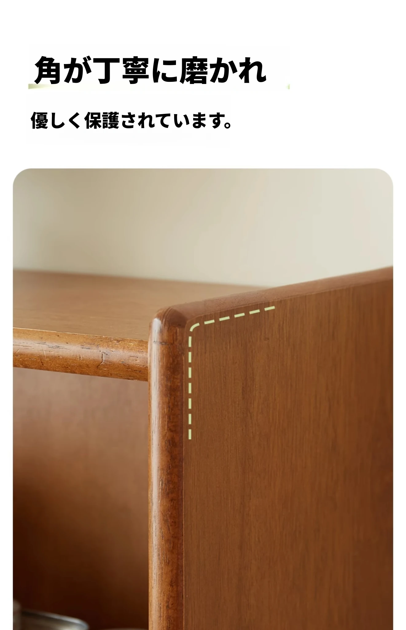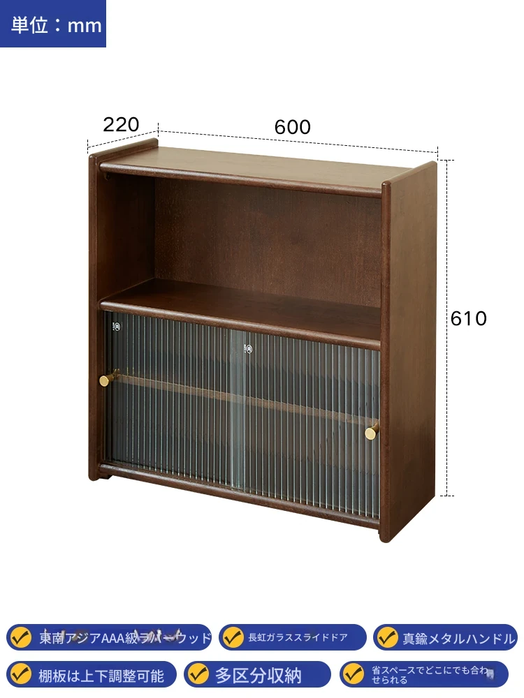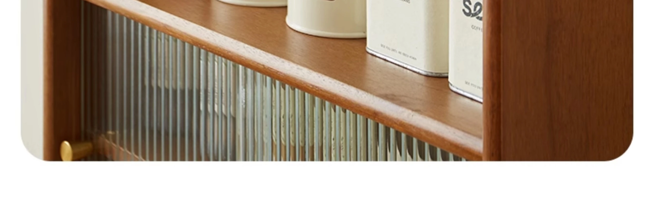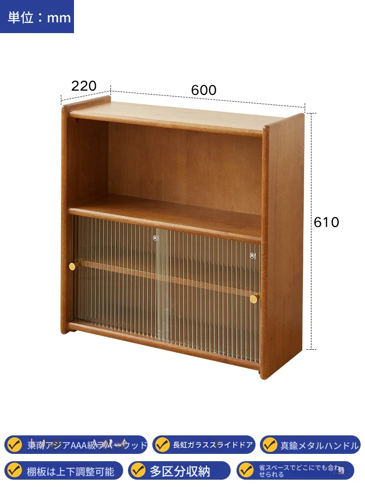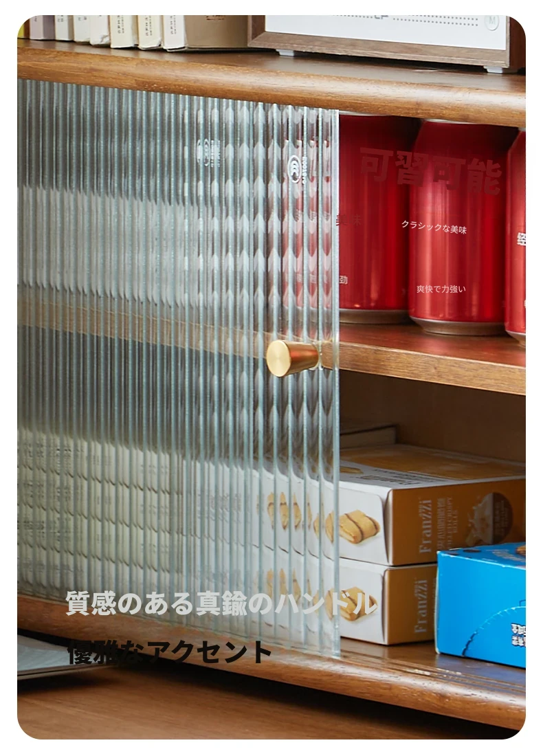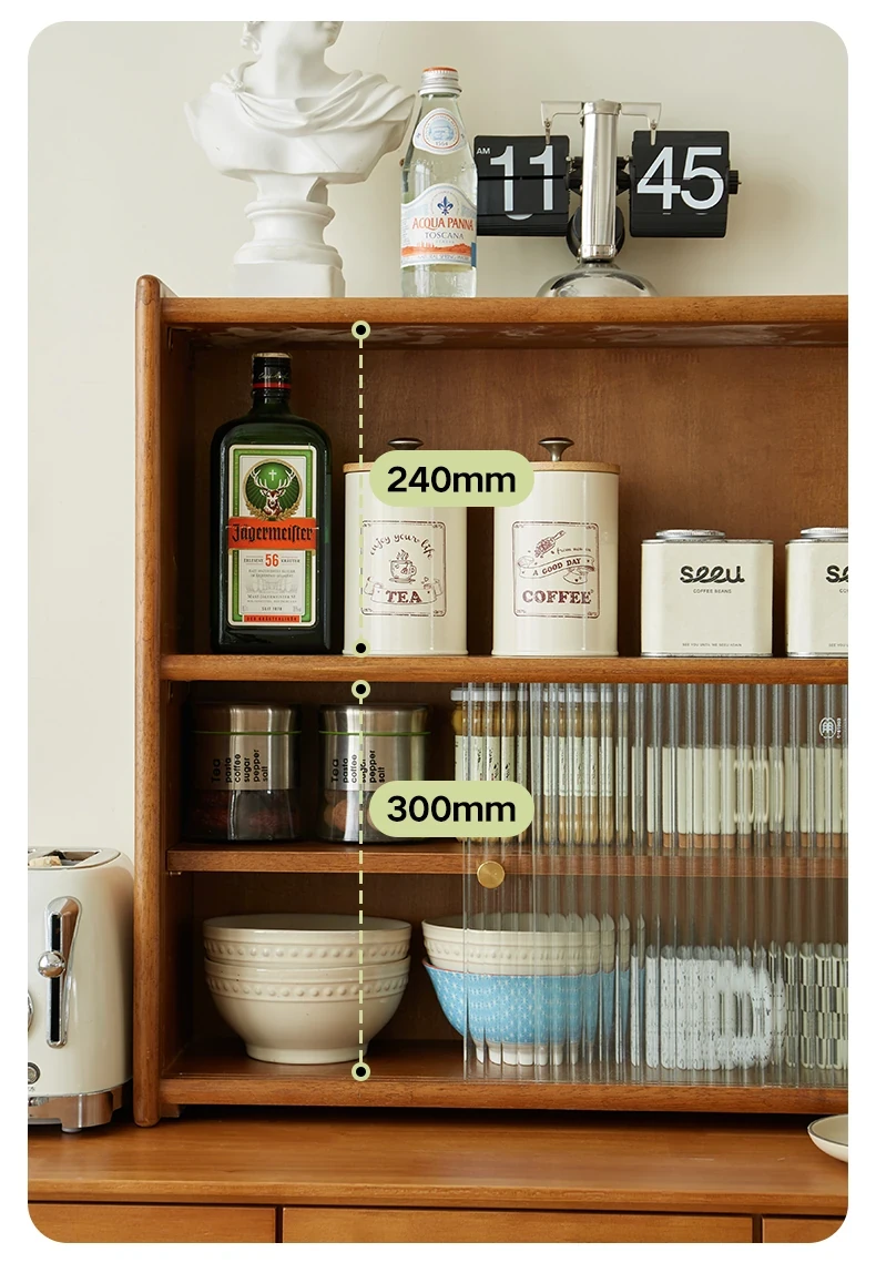天然木製のサイドボード - リビングをスタイリッシュに演出!壁付け収納でスペースを有効活用。コーヒーカップラックやフィギュアディスプレイにも最適な多機能収納キャビネット。食卓や食器の整理整頓にぴったり!
