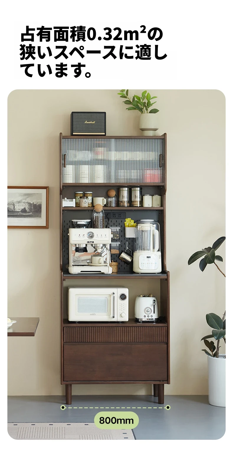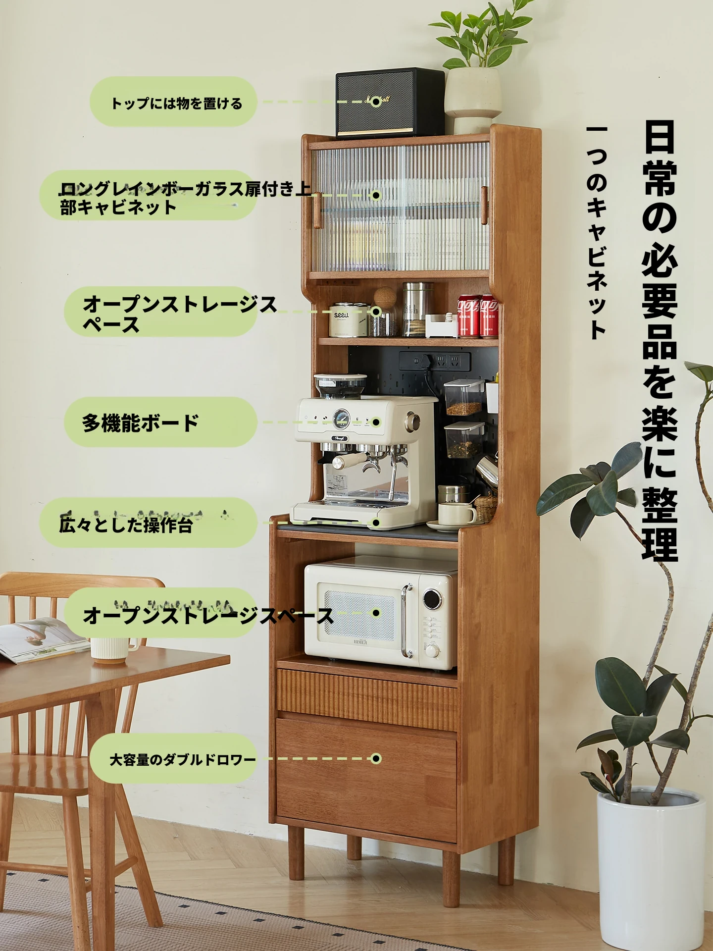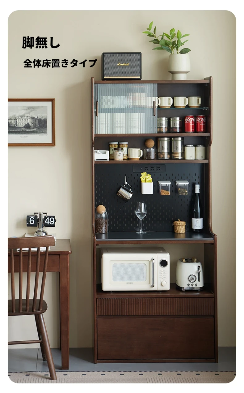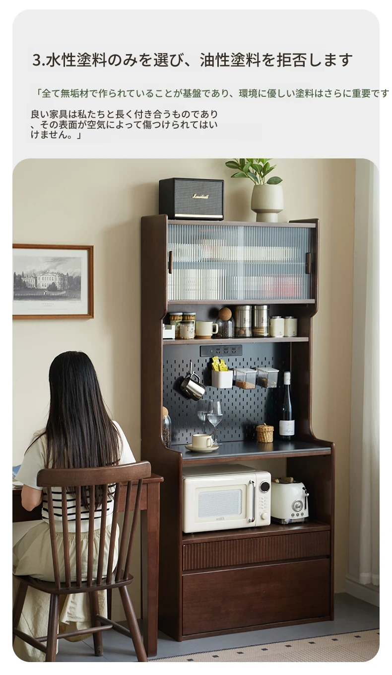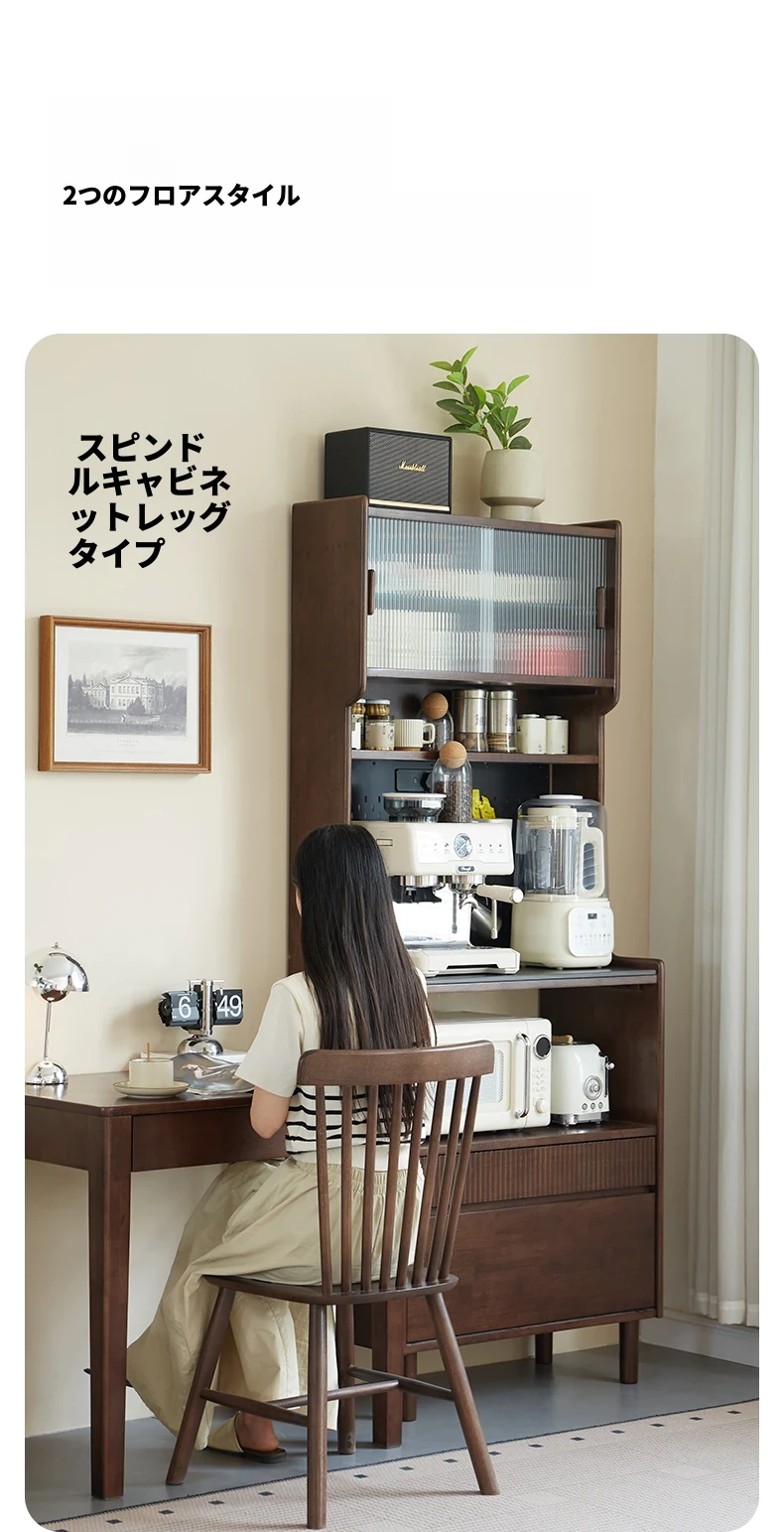 無垢材の壁付け収納キャビネット - おしゃれなリビングやキッチンに最適!スリムなデザインで省スペース、ティーサービスや日用品の整理にぴったりの多機能収納。家族の団らんを彩るアイテムです!
