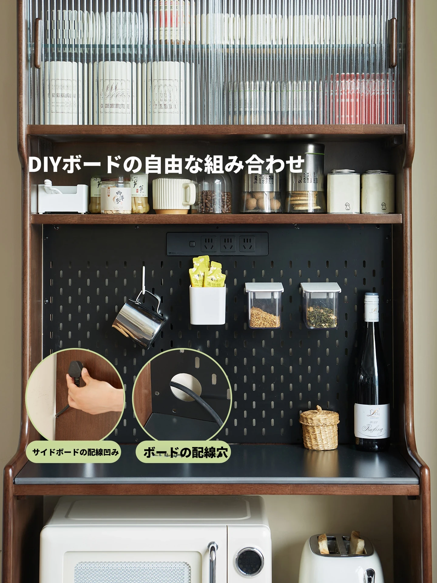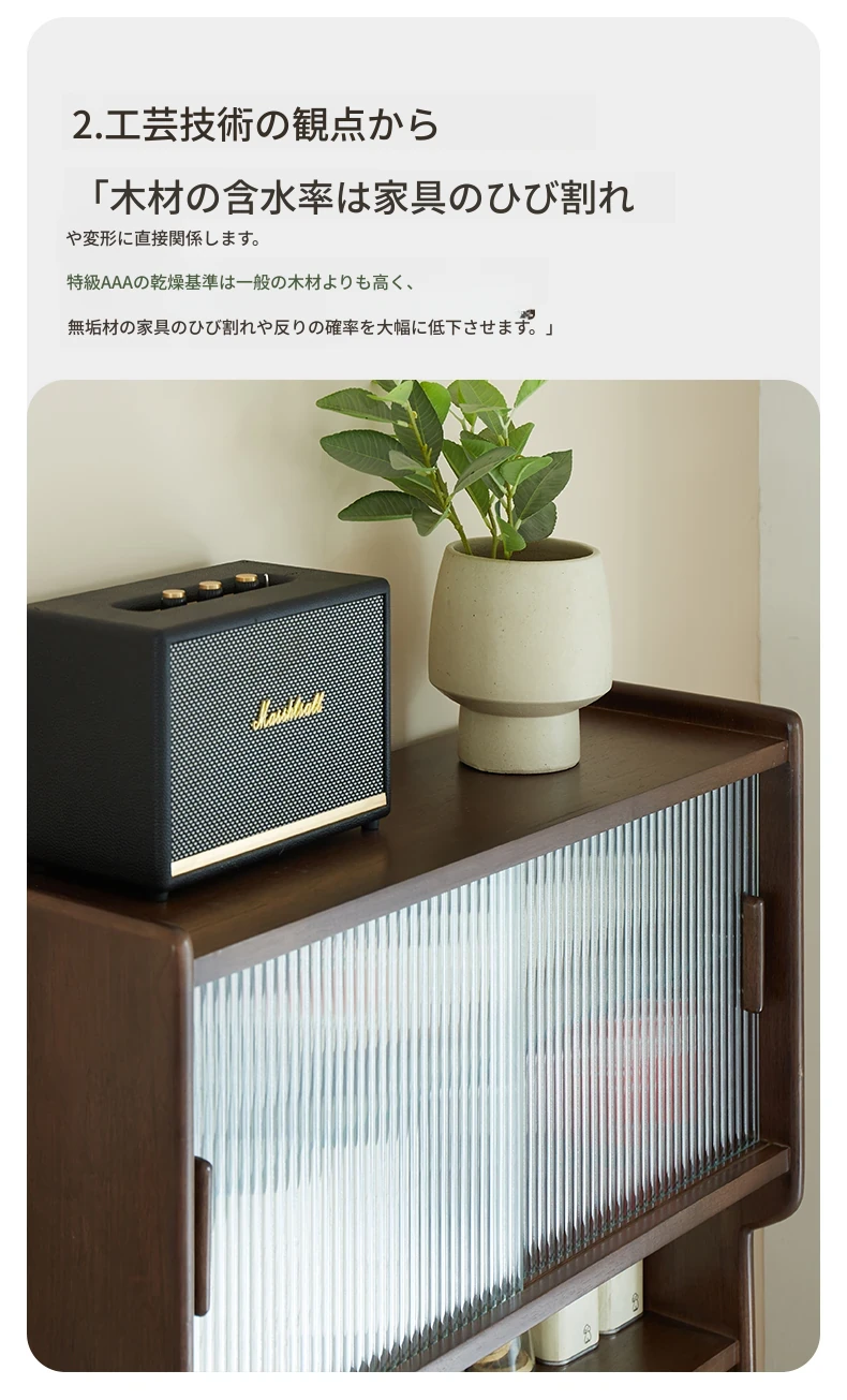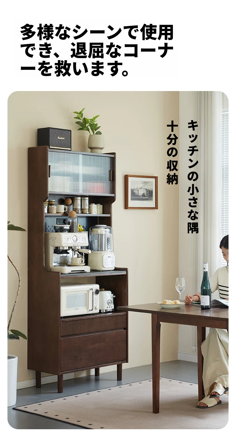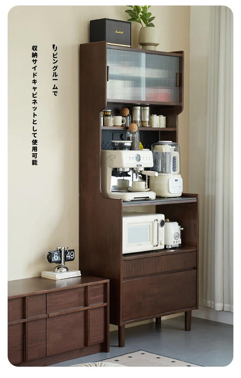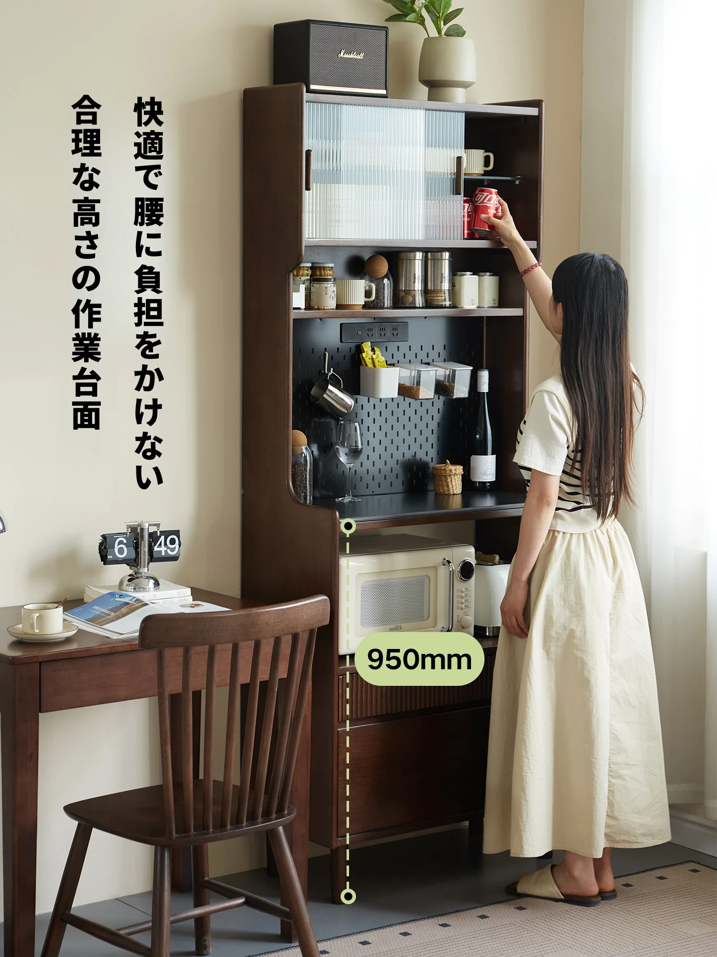 無垢材の壁付け収納キャビネット - おしゃれなリビングやキッチンに最適!スリムなデザインで省スペース、ティーサービスや日用品の整理にぴったりの多機能収納。家族の団らんを彩るアイテムです!