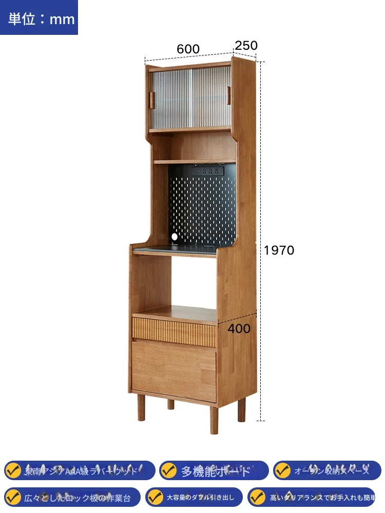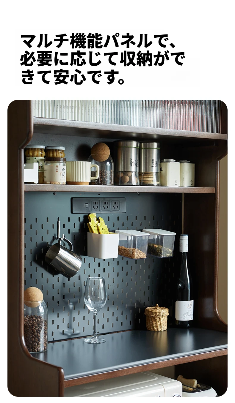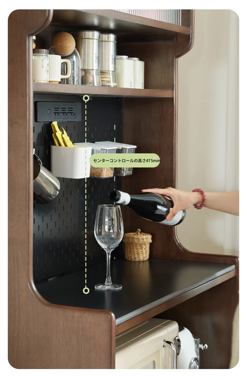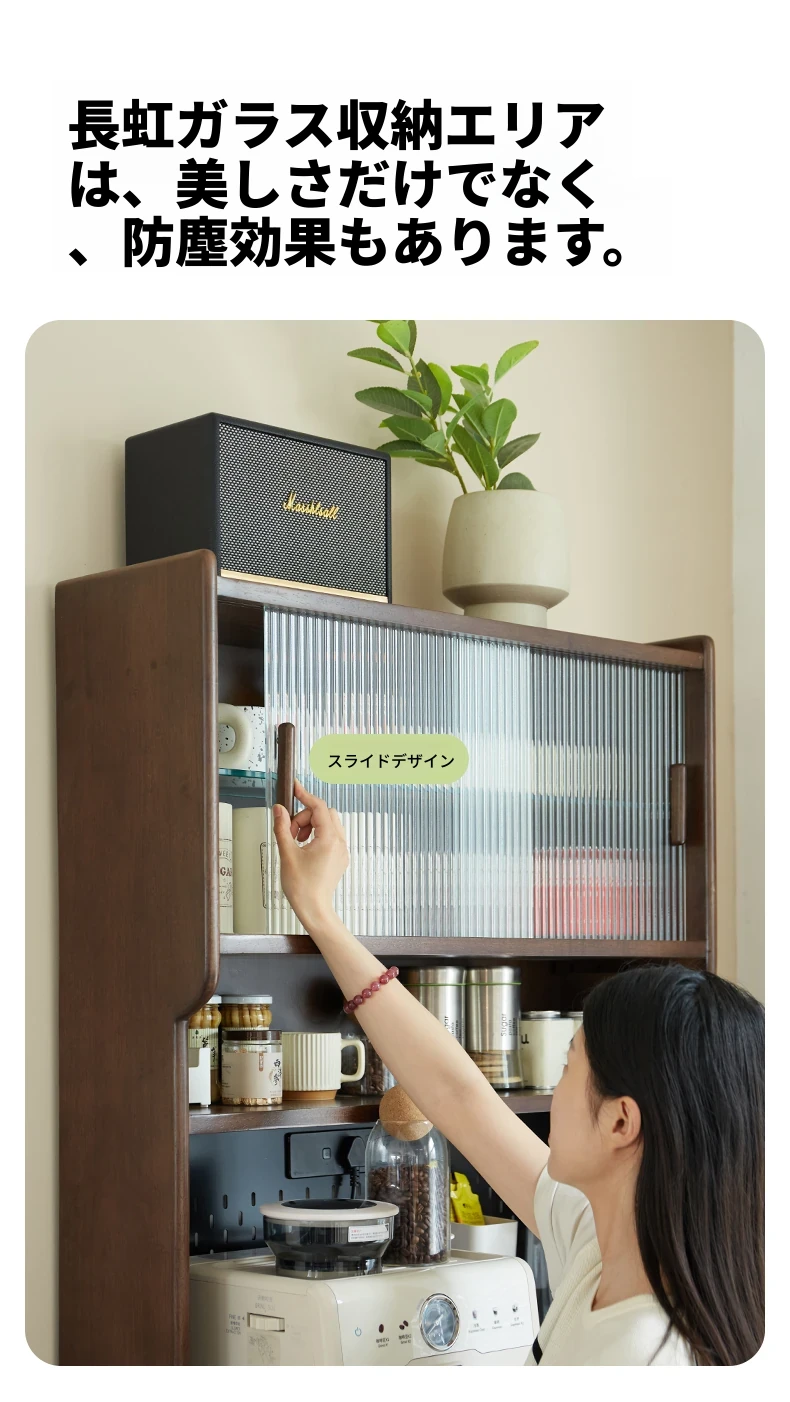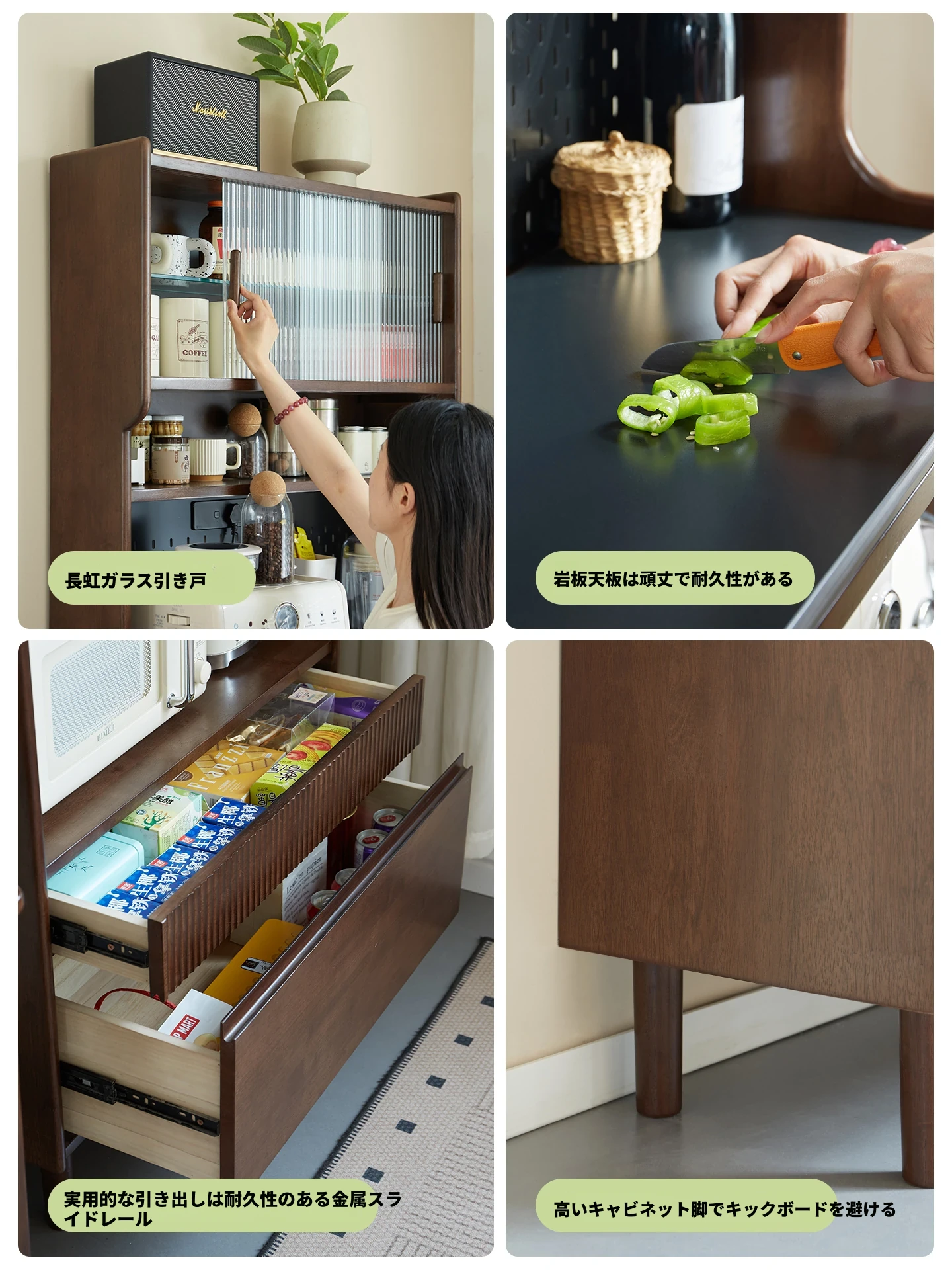 無垢材の壁付け収納キャビネット - おしゃれなリビングやキッチンに最適!スリムなデザインで省スペース、ティーサービスや日用品の整理にぴったりの多機能収納。家族の団らんを彩るアイテムです!