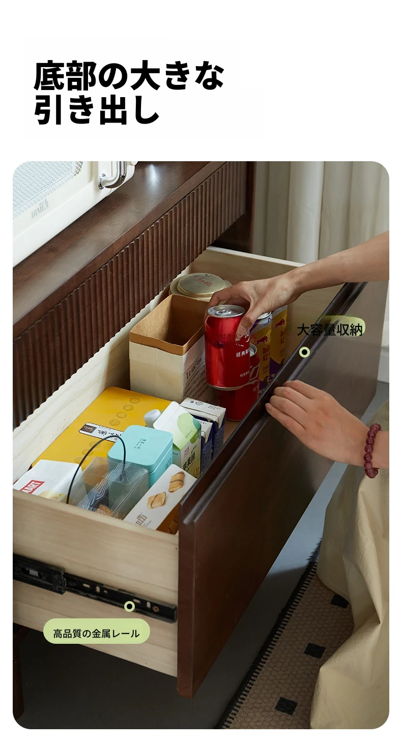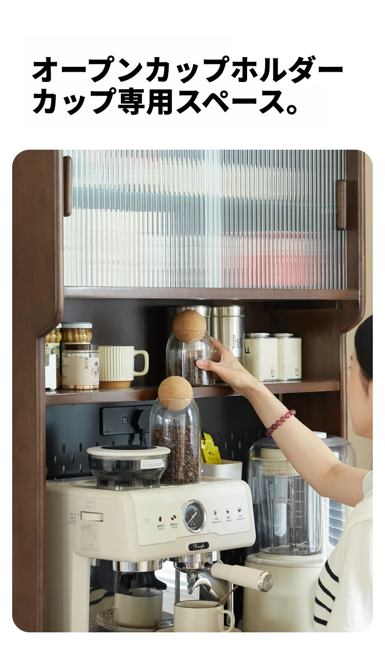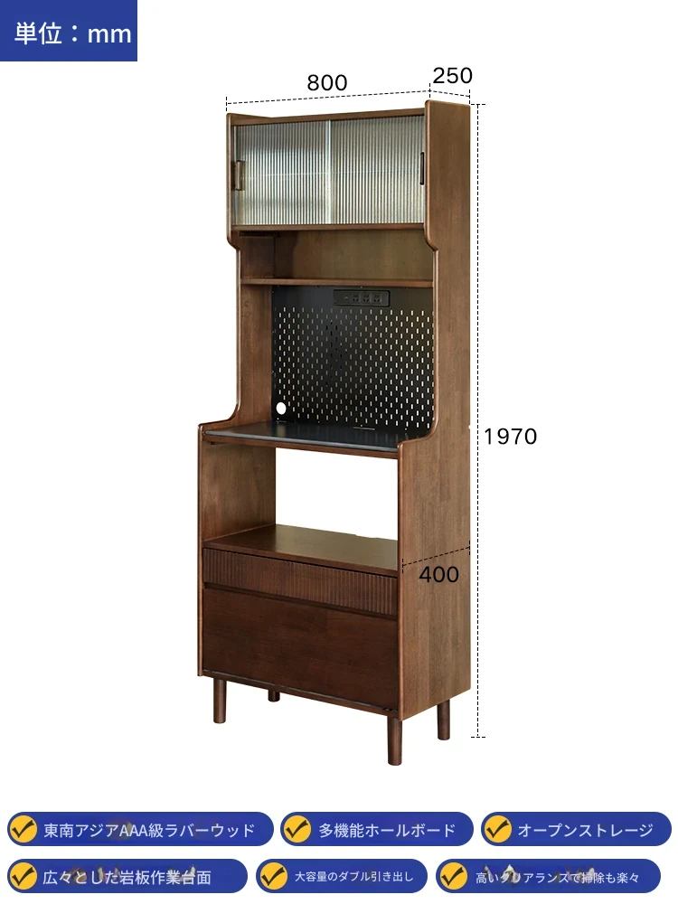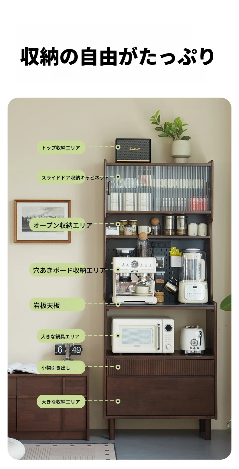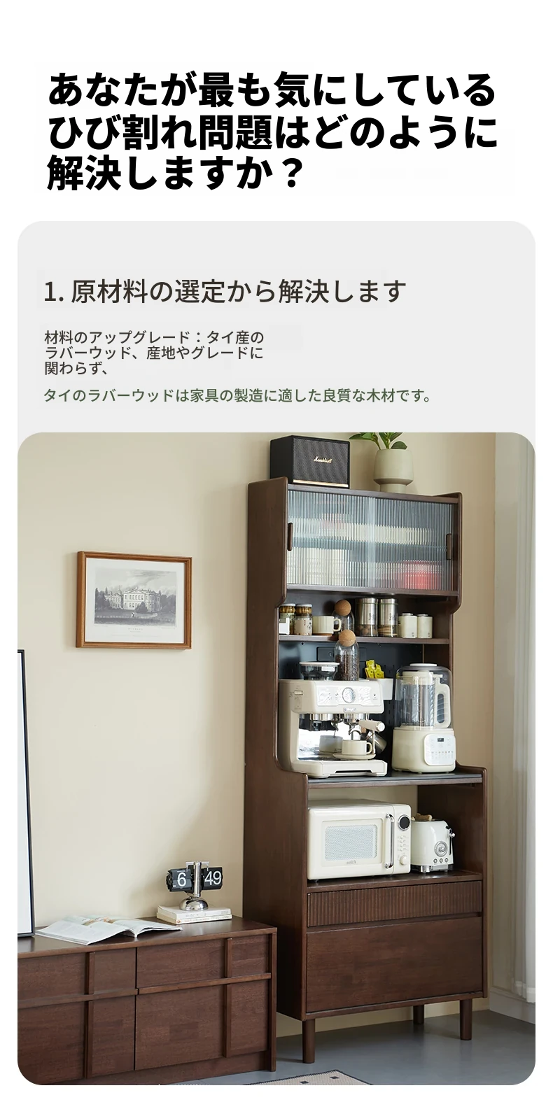 無垢材の壁付け収納キャビネット - おしゃれなリビングやキッチンに最適!スリムなデザインで省スペース、ティーサービスや日用品の整理にぴったりの多機能収納。家族の団らんを彩るアイテムです!
