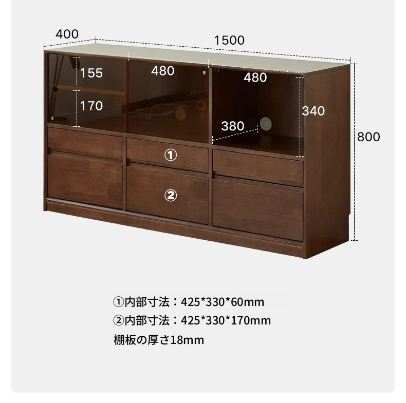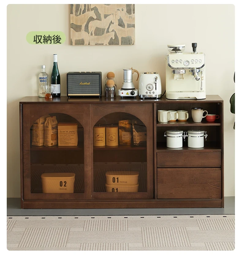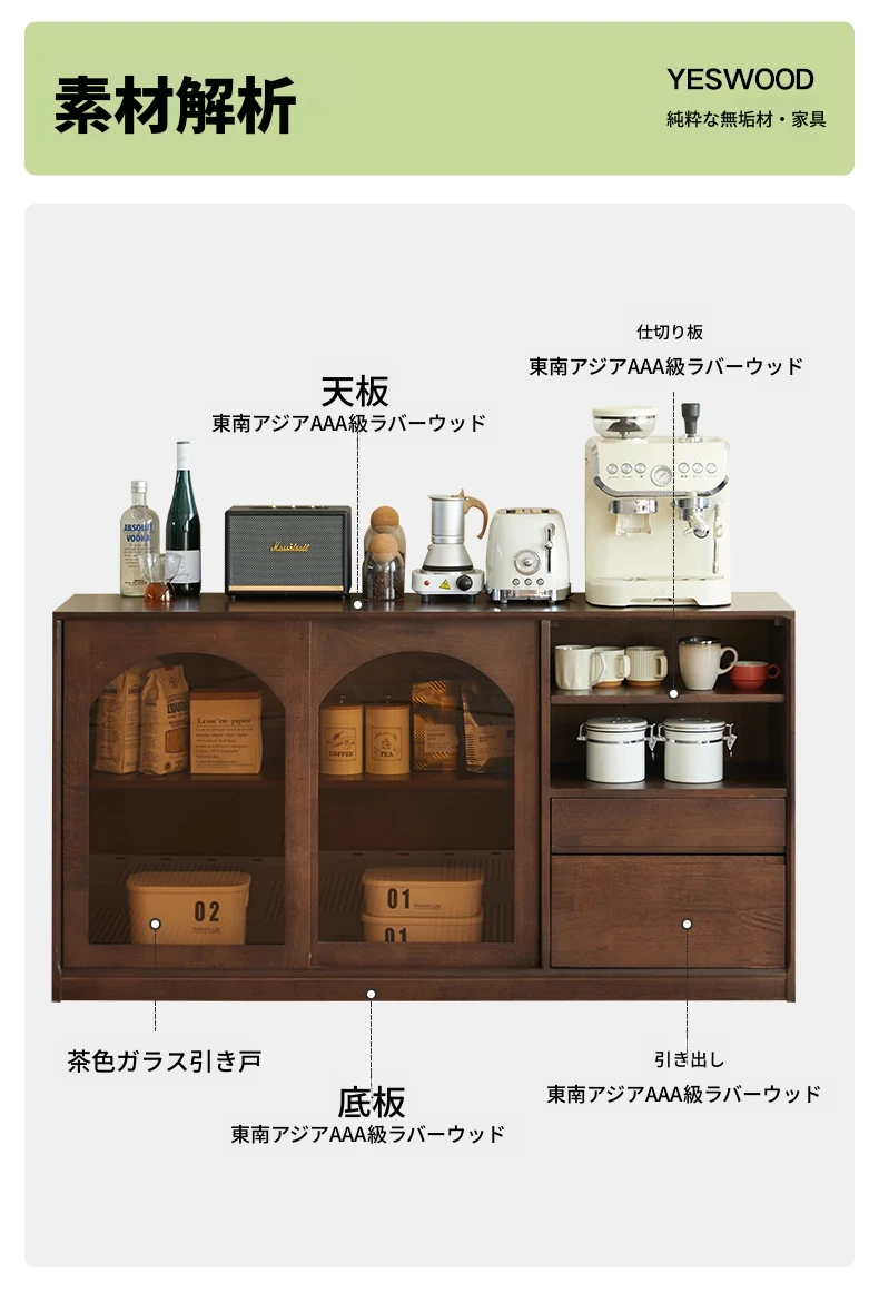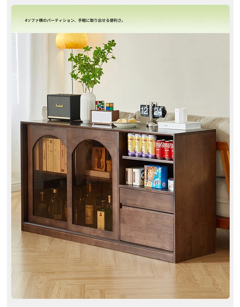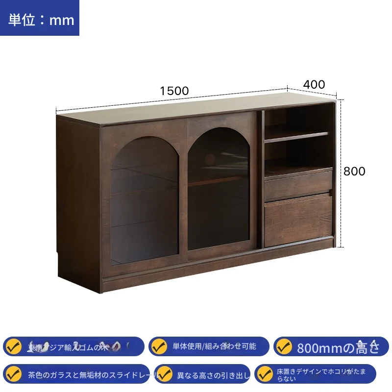 1.5メートル二引き出しアーチ型スライドドアチェスト
