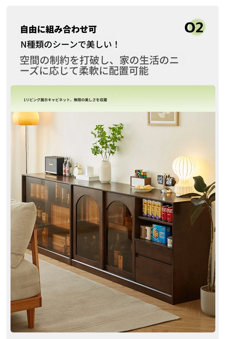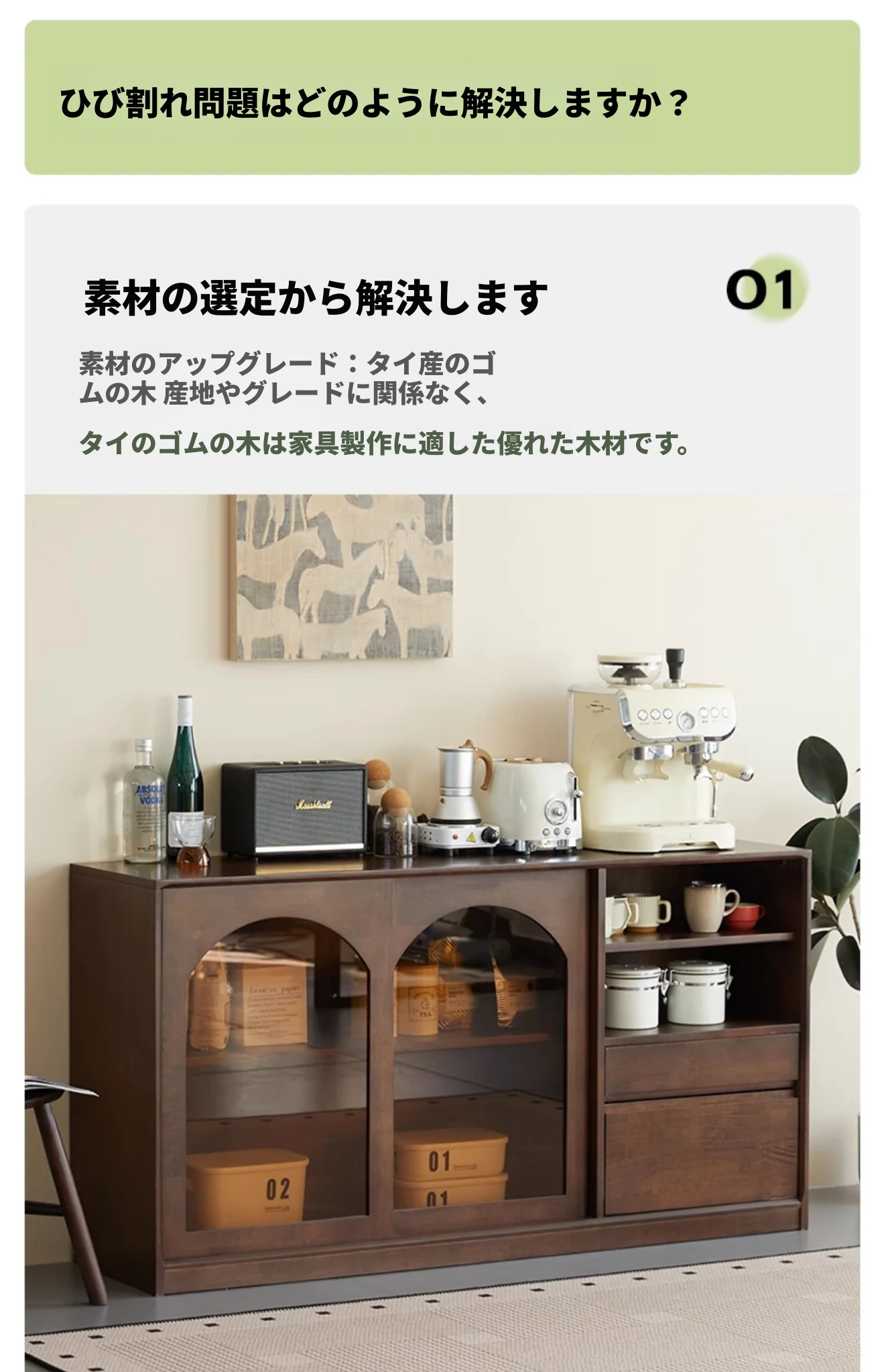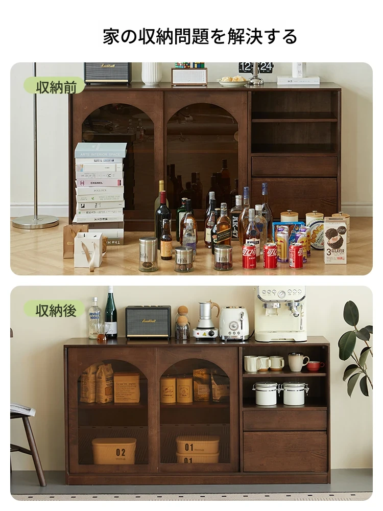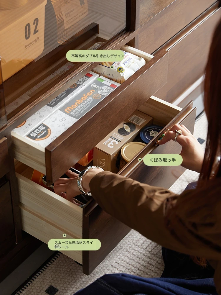 1.5メートル二引き出しアーチ型スライドドアチェスト