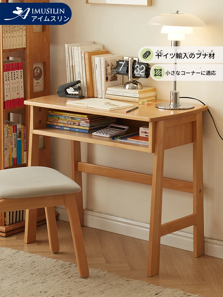 シンプルでスタイリッシュな無垢材の小型学習デスク - 学生や家庭用に最適!ベイジュウ材を使用した日本風のデザインで、狭い部屋にもぴったり。快適な作業環境を提供します。