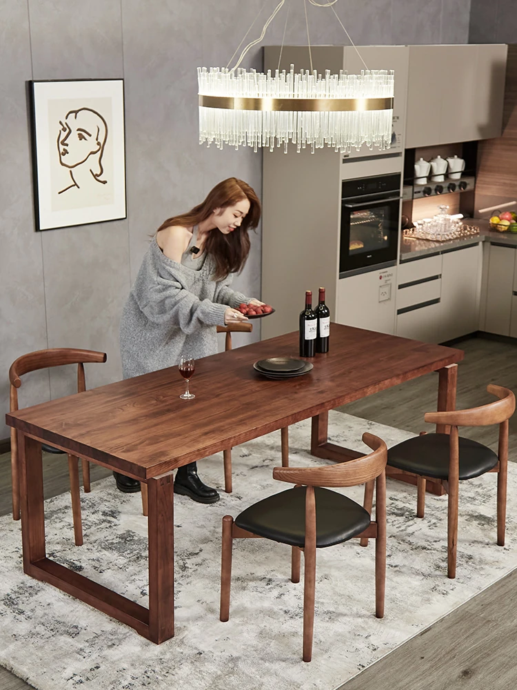 モビエン木製ダイニングテーブル - シンプルでモダンなデザイン、小さな部屋にもぴったりな北欧スタイルの長方形デスク。家庭用やオフィス用に最適、心地よい食事空間を演出します!