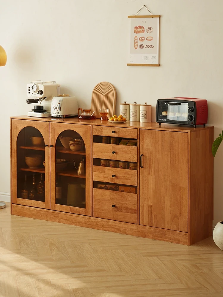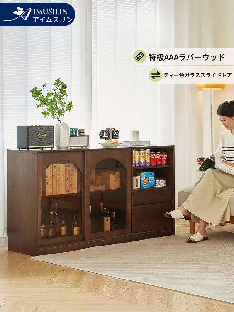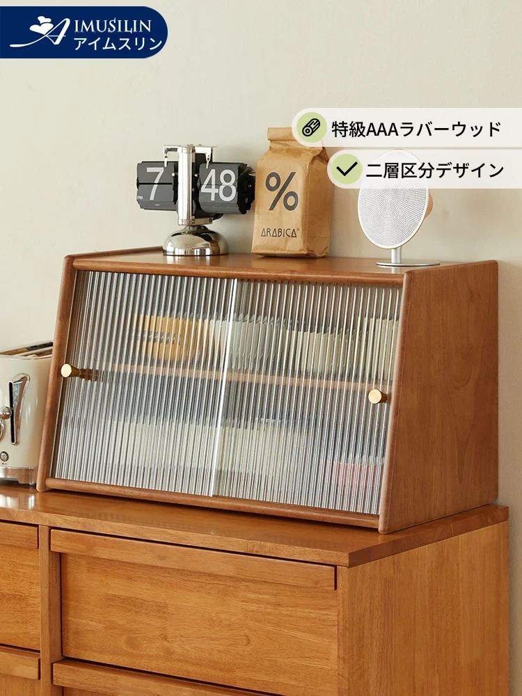 天然木製のダイニングサイドキャビネット - おしゃれなティーキャビネット、収納力抜群のテーブル上収納、埃を防ぐ食器棚、フィギュアも収納可能!日本のライフスタイルにぴったり。