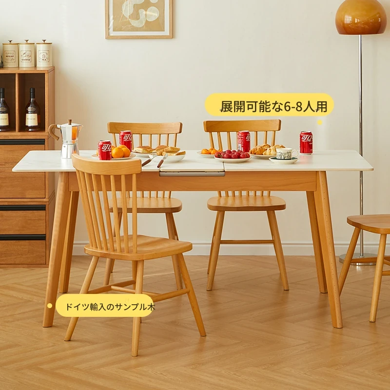 全実木製の折りたたみ円形ダイニングテーブル - 小スペースに最適!回転式で使いやすく、四角形に伸縮可能なテーブルと椅子のセット。お洒落で機能的、家庭にぴったりのアイテムです!