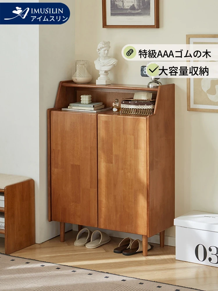 壁掛けに最適!スタイリッシュな実木製シューズキャビネット - 省スペースで多層収納、玄関をおしゃれに演出。家庭用の便利な収納家具で、スッキリとした入居空間を実現!