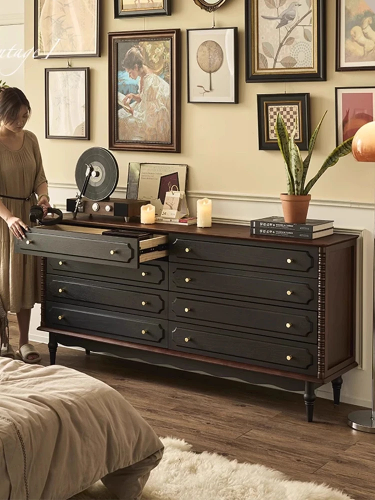 無垢材テレビキャビネット収納付き リビング用カマンキャビネット ウォールナット色 小型住宅向け ヴィンテージスタイルのチェスト おしゃれな空間を演出!