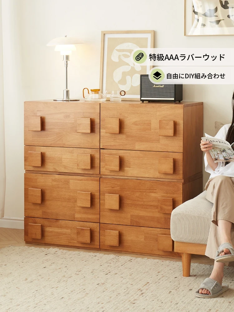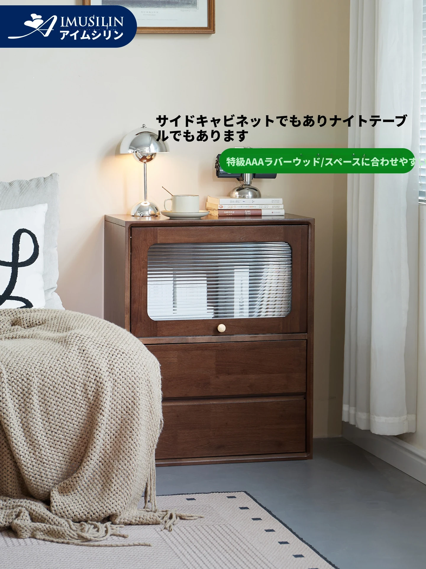 高級感溢れる無垢材のベッドサイドキャビネット|シンプルでスタイリッシュな収納|寝室にぴったりのコンパクトな引き出し付きローボード|ベッドサイドや足元に最適なアイテム!