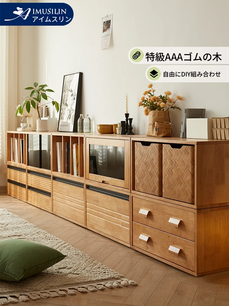 シンプルで使いやすい!和風のフロア書棚・収納ラック - 自由に組み合わせ可能な実木製のグリッドキャビネット。壁にぴったりフィットして、家の中をすっきり整理整頓!