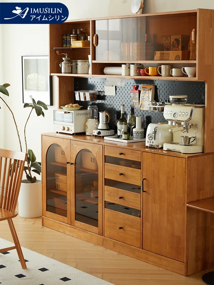 壁掛け一体型収納キャビネット|天然木製キッチンハイキャビネット|リビング用ティーキャビネット|和風の穴あきボード収納で、スタイリッシュに整理整頓!
